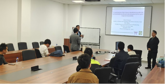 2024年10月28日,应我院曹博副教授的邀请,日本广岛大学Iwamoto Takeshi副教授来访并为民航国际讲坛作学术报告。Iwamoto Takeshi副教授此次讲座的主题为“利用晶体塑性有限元模拟预测马氏体相变微观结构的时空亚稳态(Crystal Plasticity Finite Element Simulation to Predict the Martensitically-transformed Microstructure by the Spatio-temporal Metastability)。讲座由曹博副教授主持,吸引了我院多位教师及研究生参加,气氛热烈,交流深入。